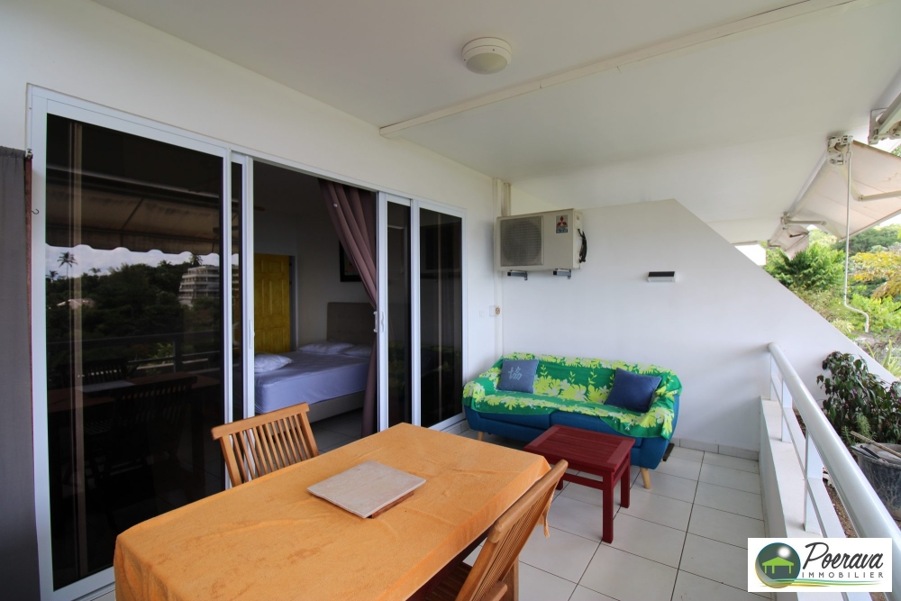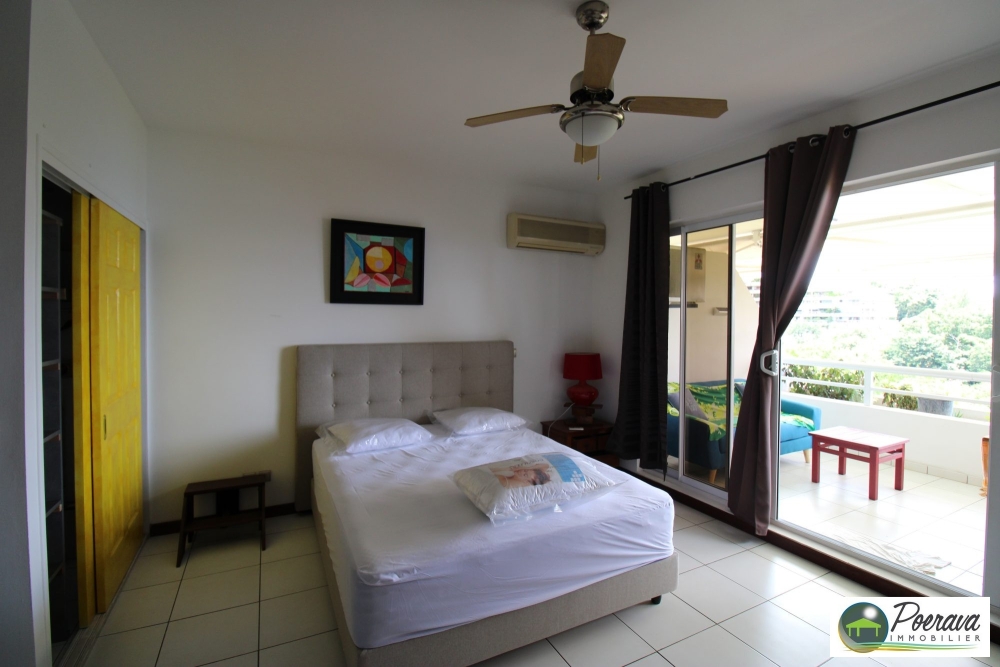 Appartement de type studio entièrement équipé et meublé comprenant une entrée, un coin nuit climatisé, 1 salle de bain, 1 cuisine équipée et aménagée, une terrasse couverte et 1 place de parking en sous-sol.