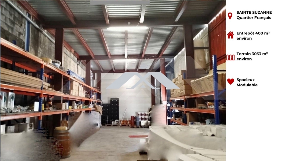 MAXImmo vous propose un entrepôt totalement modulable d'environ 1500 m² au coeur du Quartier Français à Sainte-Suzanne, à proximité immédiate des zones commerciales et de la 4 voies.