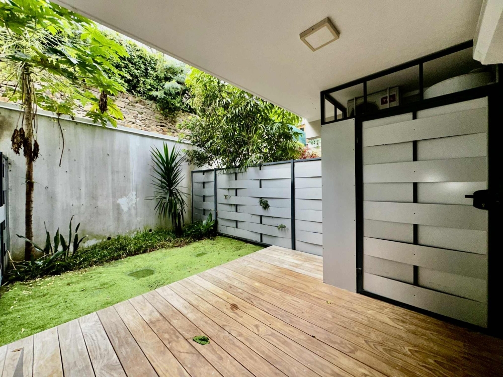 Extérieurs et stationnementLe séjour s'ouvre sur une terrasse couverte de 11,36 m², prolongée par un jardin privatif de 11,29 m², parfaits pour profiter d'un cadre verdoyant et calme.Un coin buanderie sécurisé, fermé à clé, un cellier et une place de parking privative viennent compléter ce bien.