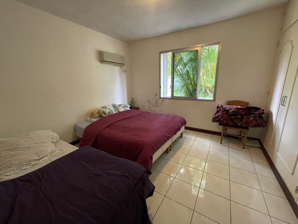 En partie nuit, la villa est composée de trois chambres avec placards dont deux climatisées de 10.4m², 12.5m² et 11.3m², toutes sécurisées par des persiennes, ainsi que d'une très grande salle d'eau / salle de bain avec douche, baignoire, meuble double vasque de 11m² et d'un WC séparé.