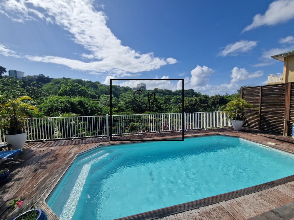 SCHOELCHER : Proche Université : Du volume pour cette villa sur 3 niveaux ou l'espace de vie est autant volumineux qu'intime. Pour y accéder vous empruntez l'entrée commune avec l'appartement T4 actuellement loué (jusqu'en 2026) et vous descendez par les escaliers extérieurs jusqu'à découvrir les 140m² développé d'espace de vie principal : terrasse (ouvrant sur la piscine - vue sur la foret très dégagée), séjour, cuisine, buanderie, salle de sport (!!!) et sa salle d'eau. L'espace nuit au niveau intermédiaire est distribué par un grand palier : Suite parentale de 50m² avec salle d'eau, dressing, balcon privatif puis deux chambres avec accès terrasse et salle d'eau. Le bien dispose d'un garage, possibilité de faire une chambre étudiant complémentaire. Pour résumer = 210m² habitable, toutes les chambres ont accès à une terrasse, rendement locatif, secteur premium : de très très nombreuses qualités pour ce bien rare sur le secteur ! Plages, Centre de loisirs, activités sportives, écoles maternelles, primaires, collèges et université accessibles en moins de 5 minutes. Soumis au DPE : en cours. Contactez STEPHANIE BRUYELLE IMMOBILIER au 06 96 81 11 91