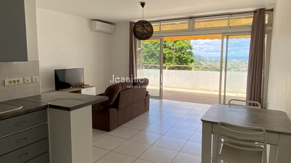 Punaauia Résidence Reva Nui, belle piscine et vue mer, ascenseur, appartement de type F2 spacieux comprenant séjour, cuisine équipée, terrasse, une chambre et une salle d'eau. Cellier/buanderie.