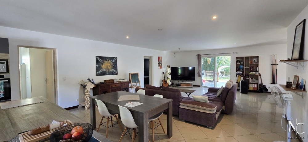 - une vaste pièce de vie de 81 m² en L avec séjour et cuisine équipée avec un ilot central,
