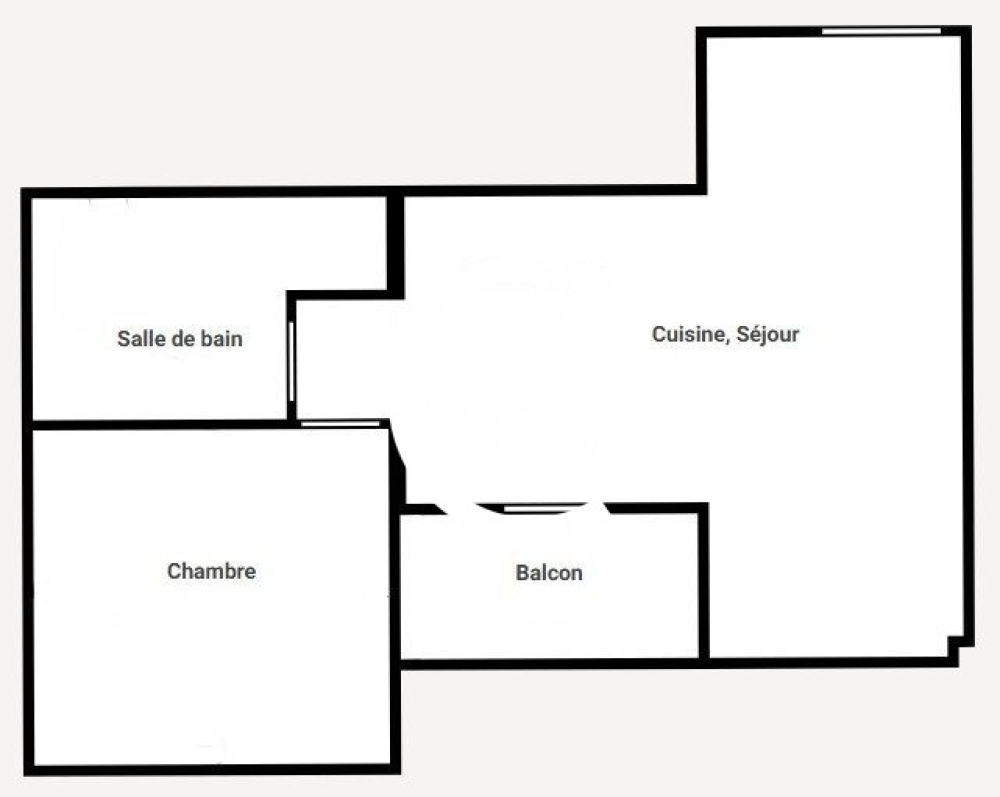 D'une surface habitable de 43 m² et d'une surface totale de 47 m², cet appartement fonctionnel comprend : un séjour avec cuisine ouverte, une chambre climatisée, une salle d'eau avec WC, une terrasse, ainsi qu'une place de parking extérieur.