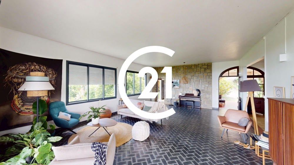 La maison, construite en dur et couverte en tuiles, se développe sur deux niveaux : Au rez-de-chaussée : deux terrasses, un séjour lumineux, une cuisine, une salle télé ou bureau, un dégagement desservant trois chambres, deux salles d'eau et un WC indépendant.