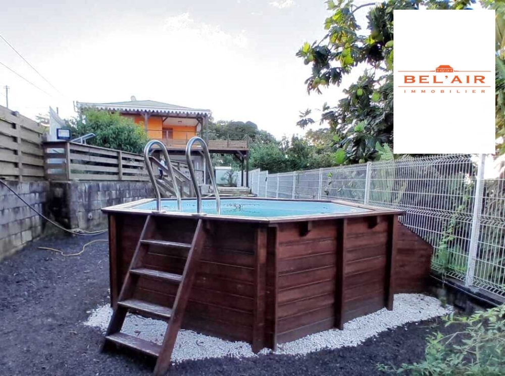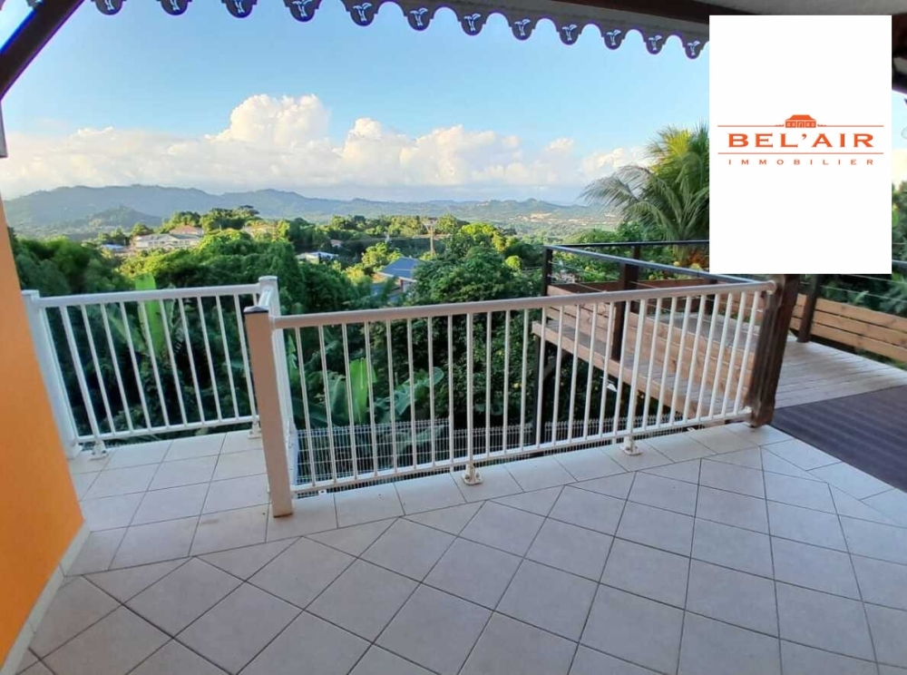 Maison de type F5 avec une grande terrasse donnant sur une vue dégagée et agréable. A l'étage: un salon, une cuisine aménagée et équipée, trois chambres dont une avec salle d'eau, une salle d'eau, un wc indépendant. Au sous-sol : une cuisine d'été, une chambre, une salle d'eau et une terrasse. Pour profiter de votre famille et amis une piscine hors-sol, un carbet et un espace barbecue.