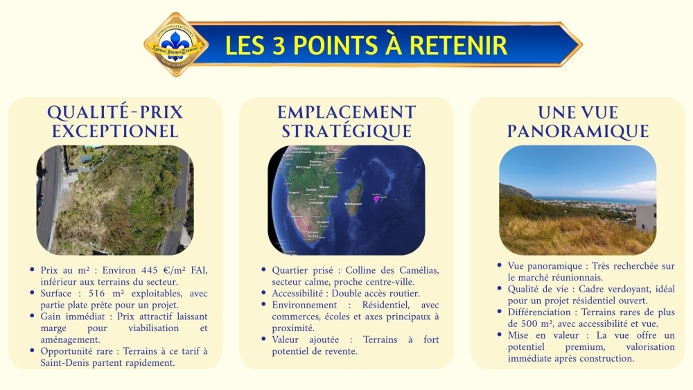 Si vous recherchez un TERRAIN à vendre à SAINT-DENIS, Colline des Camélias, offrant :