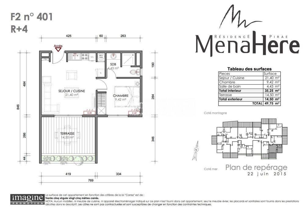 PIRAE. Appartement neuf, à deux pas de l'hôpital, dans servitude calme, 1 ch, 1 sd avec wc, séjour/cuisine, belle terrasse, meublé et équipé, résidence sécurisé, 1 pkg. 115 000 Frcs. Ag. J.Sylvain - 40 43 99 77