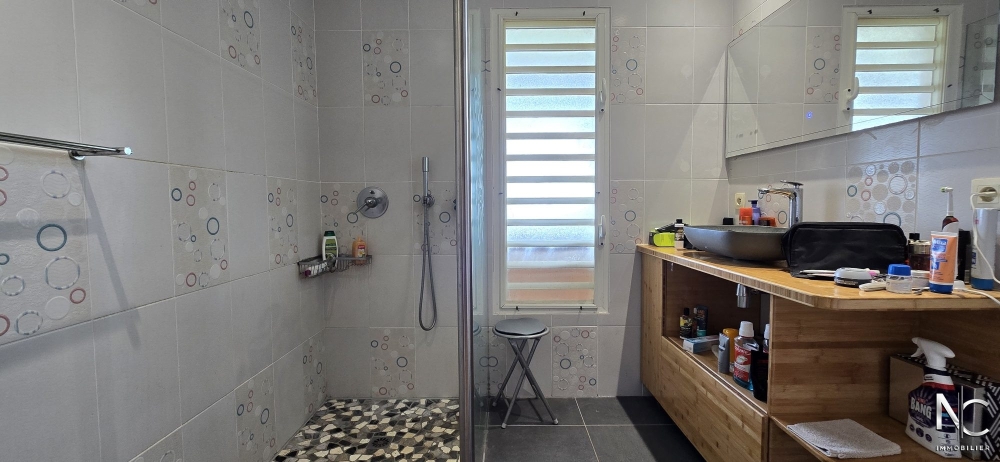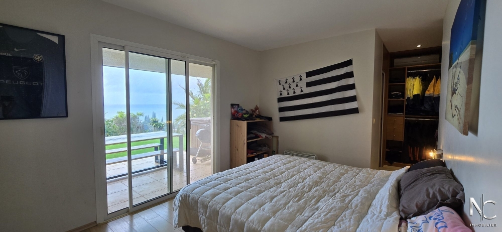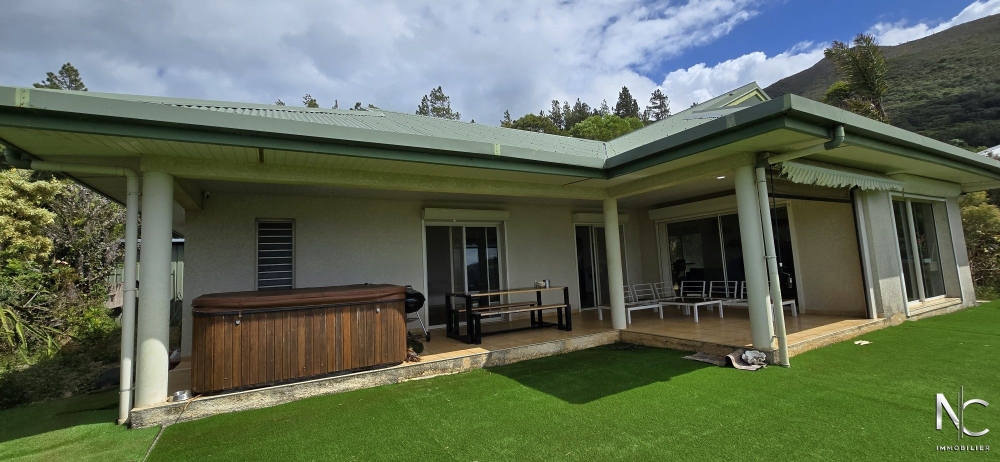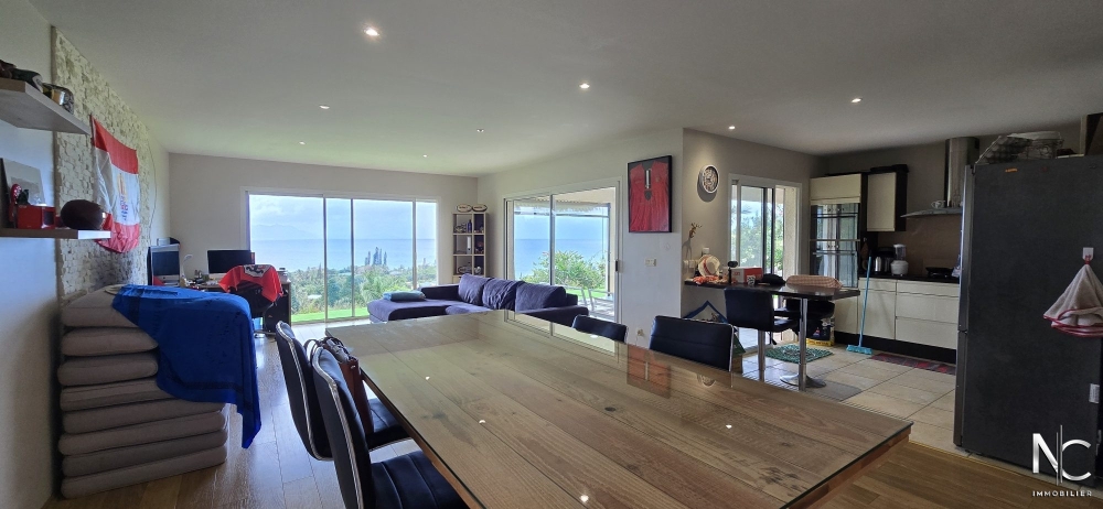 Située sur les hauteurs du Mont-Dore Sud et offrant une magnifique vue mer, villa traditionnelle F4 de 122 m² habitables offrant : séjour/salon ouvert sur une cuisine équipée, 3 chambres climatisées avec placards dont 1 suite parentale avec dressing et salle d'eau privative + wc, buanderie, 2ème salle d'eau et 2ème wc indépendant.