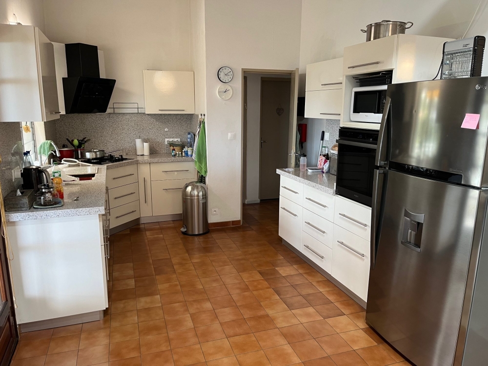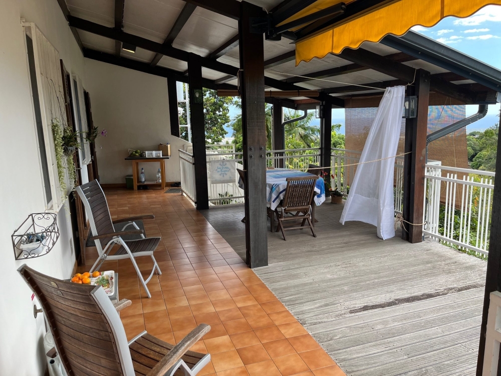 Le bien bénéficie d'un garage de 45 m² et d'une terrasse couverte de 38 m² qui offres une vue imprenable entre mer et montagne, un jardin atypique en escalier ou ce trouve des arbres fruitiers.