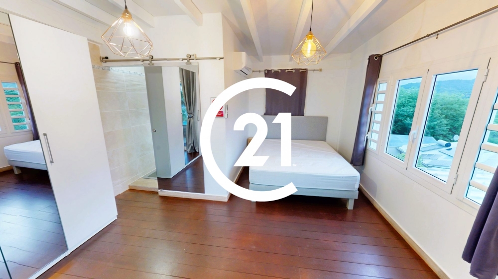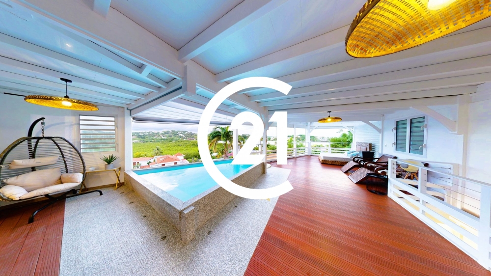 Les extérieurs sont tout aussi remarquables : une terrasse fermée de 43 m², un garage couvert de 50 m², une belle piscine bordée d'un carbet aménagé avec salon de jardin et cuisine extérieure.