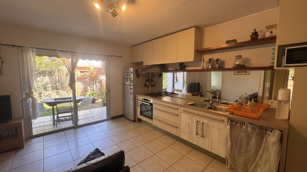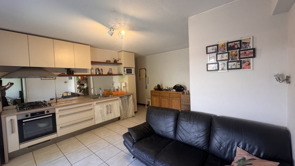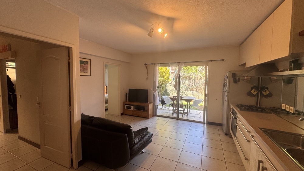 Dans une petite rue en sens unique, au calme, Appartement de 50m², en Rez de jardin, comprenant : cuisine équipée ouverte sur séjour, 2 chambres avec placards, salle de bain, terrasse couverte et jardin.