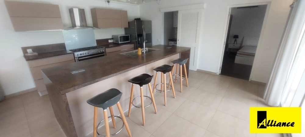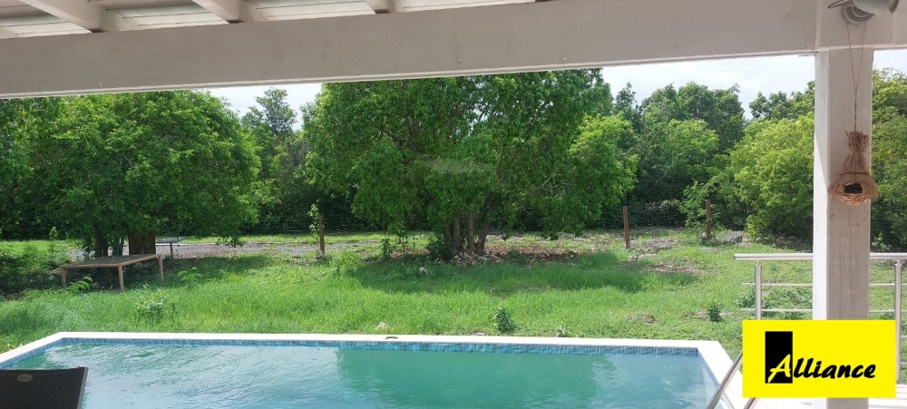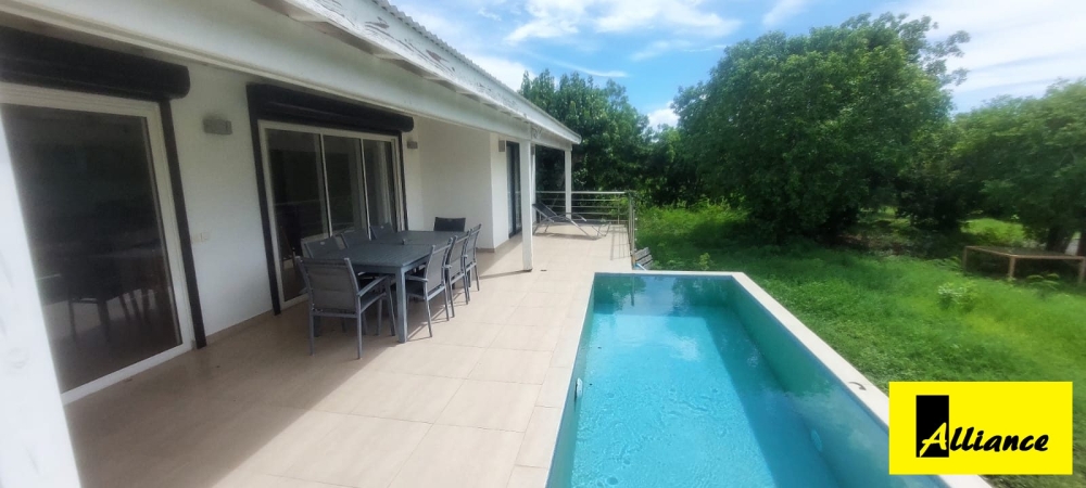 A louer dans le lotissement des Terres Basses, une villa 2 chambres de plain-pied entièrement meublée, terrasse avec accès piscine, jardin, parking.