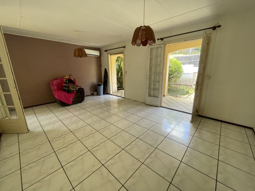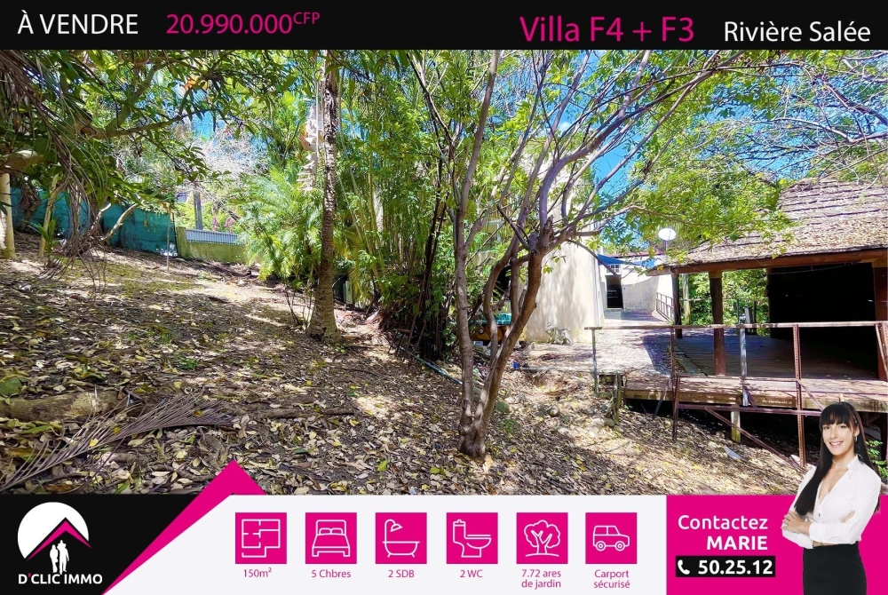 Située dans un quartier résidentiel très calme de Rivière Salée, l'agence D'CLIC IMMO vous propose une spacieuse villa individuelle en construction traditionnelle de type haut de villa F4 en bon état (à remettre au gout du jour) de 86.70m² habitable + bas de villa F3 à rénover de 63.7m² habitable + terrasses, faré, carports, le tout datant de 1984, sur un grand terrain en pente, arboré, clôturé, avec portail manuel de 7.72 ares.