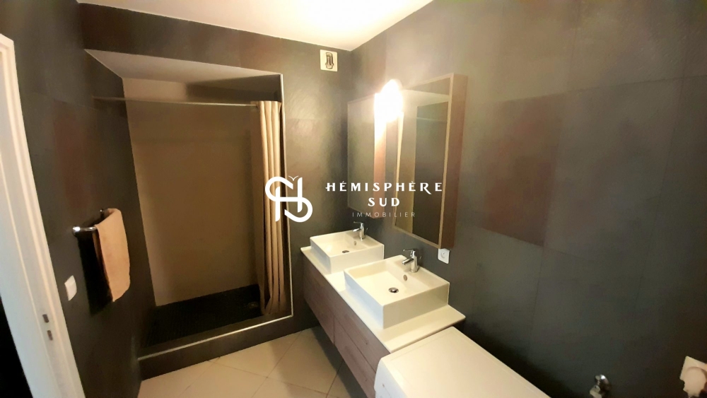 Dans une résidence avec piscine et espaces de jeux pour jeunes enfants, très agréable appartement F3 meublé de 70 m² à louer. Disposant de deux stationnements privatifs et d'un cellier, le logement se compose :