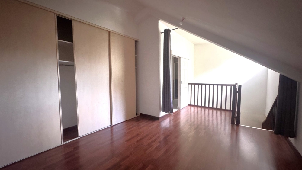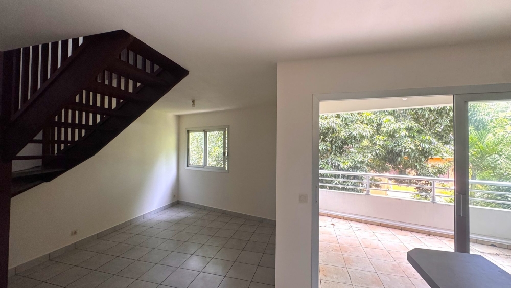 A proximité de la Boucherie du 7eme, dans une petite Résidence récente, au calme, grand appartement en duplex de 58m² comprenant : cuisine équipée ouverte sur séjour, terrasse couverte donnant sur un jardin, à l 'étage, grande chambre climatisée avec placards, coin bureau, salle d'eau.