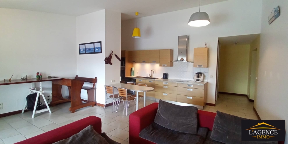 Dans une résidence calme et sécurisée, appartement F4 d'une superficie de 99m² composée d'une cuisine équipée et aménagée, d'un séjour, d'une salle d'eau, d'un WC indépendant, de trois chambres avec placards dont une avec salle d'eau et WC, une terrasse couverte d'environ 12m².