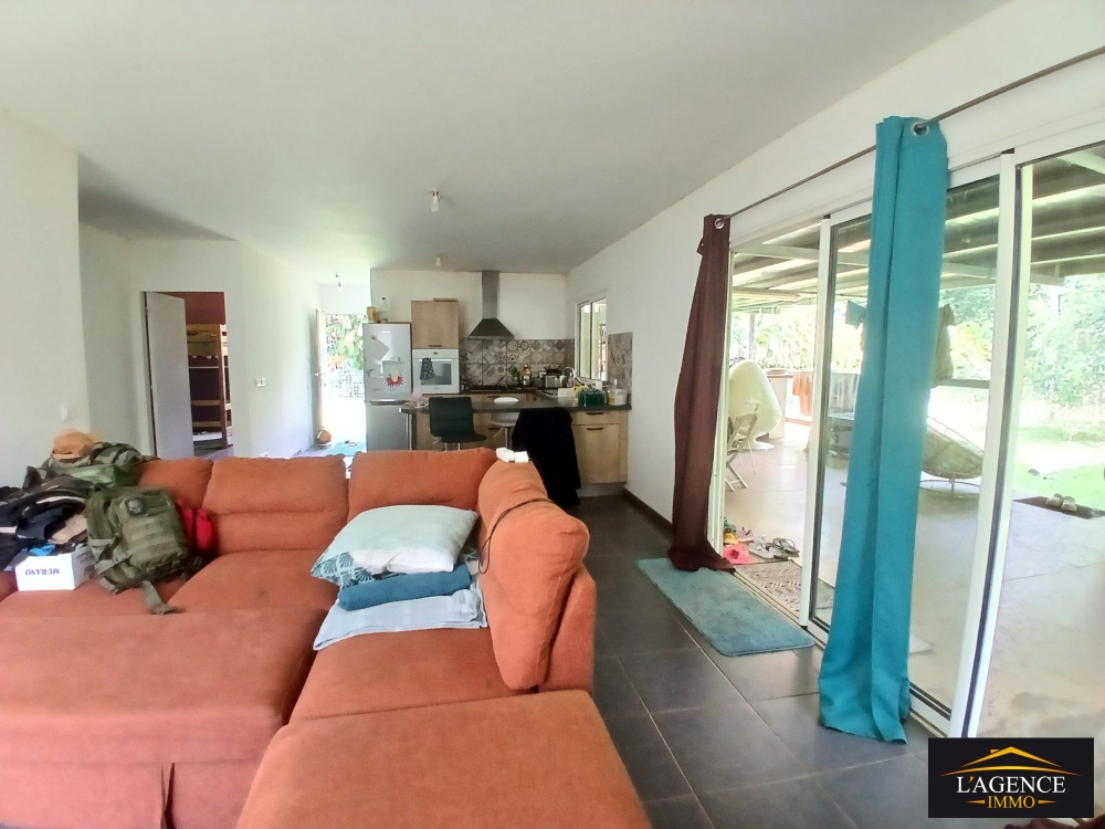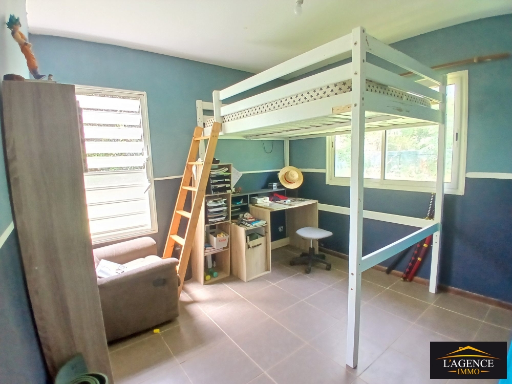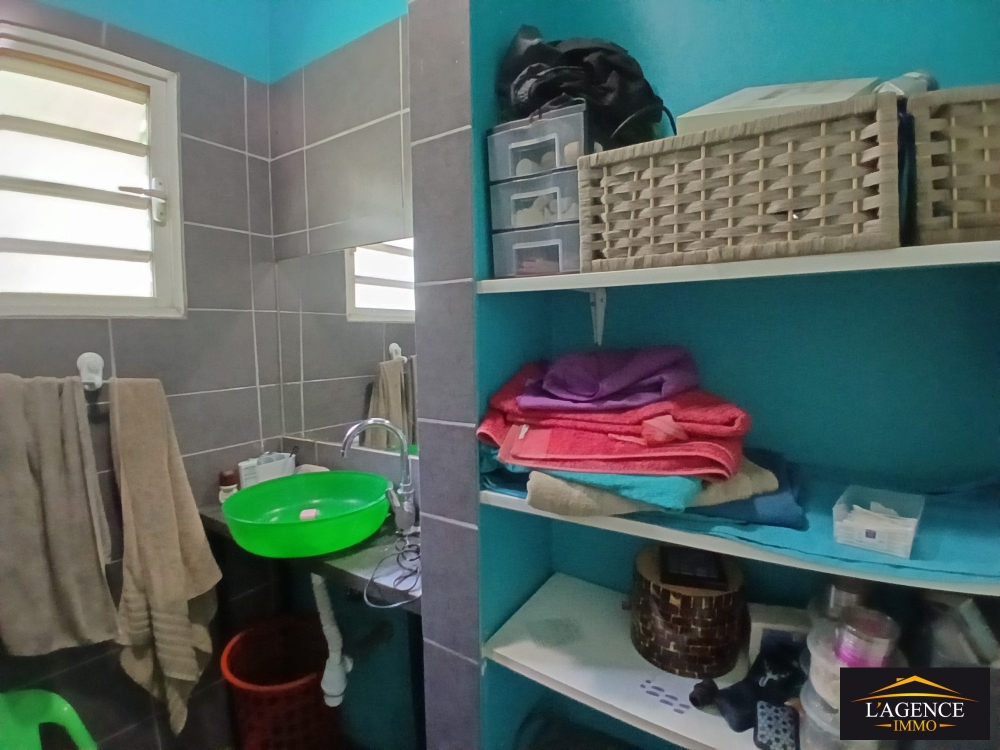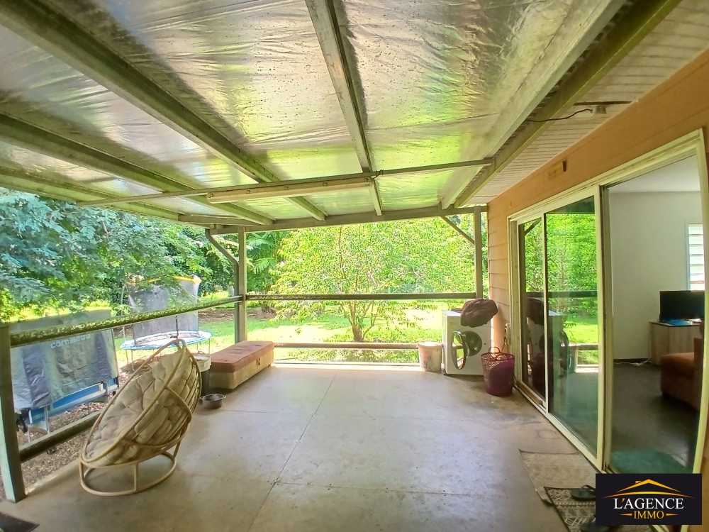 Dans un quartier résidentiel et proche de la rivière, villa F3 d'une superficie d'environ 75m² composée d'une cuisine équipée et aménagée, d'un séjour, d'une buanderie, d'une salle d'eau, d'un WC indépendant, de deux chambres avec rangements et d'une grande terrasse couverte de 42m².