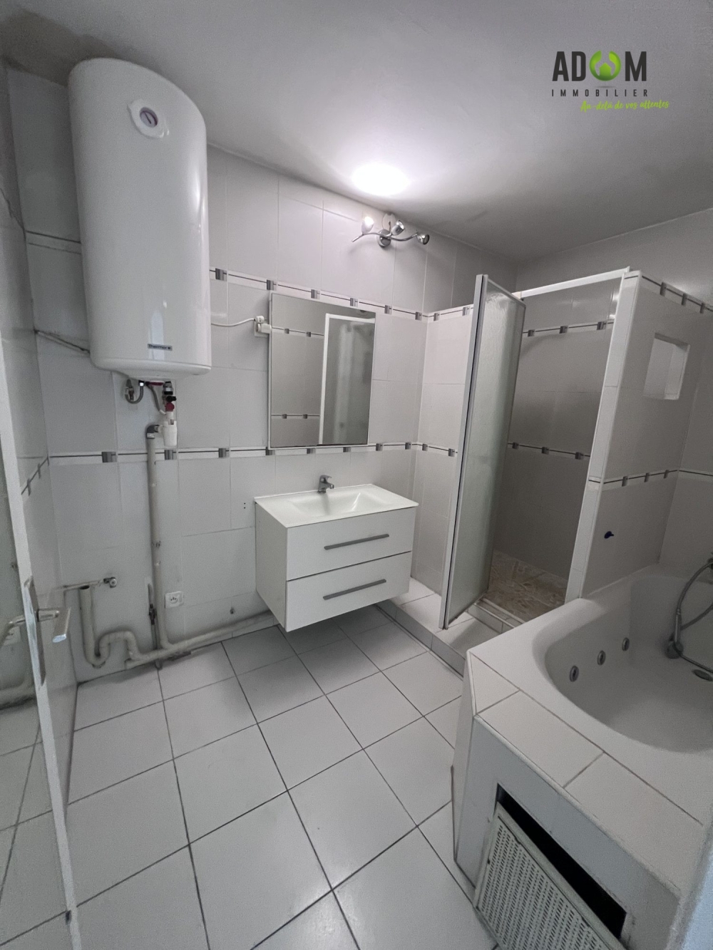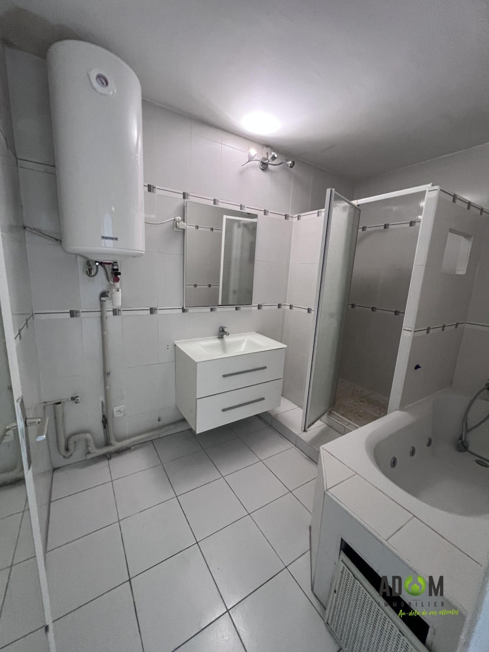 Salle de Bain de 8,80 m équipée à la fois d'une douche et d'une baignoire balnéo.