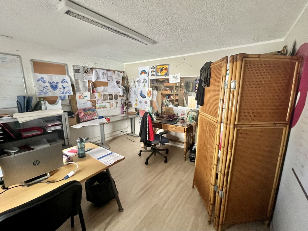 A louer sur Magenta, dock d'une superficie totale de 329m² composé d'une pièce principale de 190m² avec deux grandes portes et un WC, une mezzanine avec un premier bureau de 17.5m², un deuxième bureau de 14.5m² et une surface de stockage/travail de 110m².