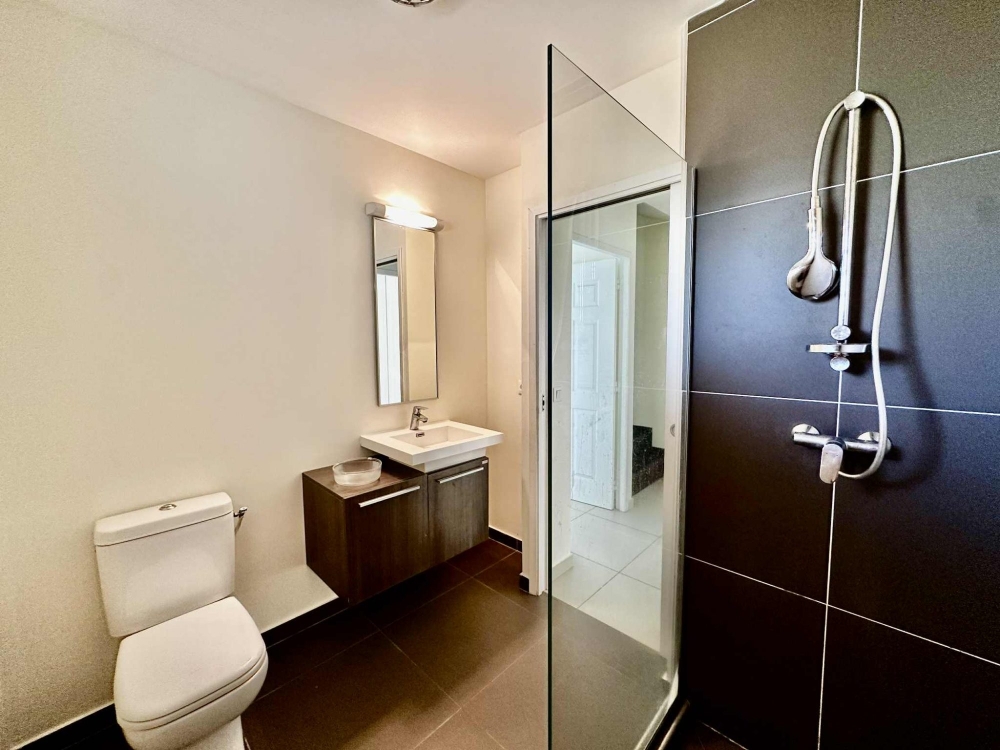 Au rez-de-chaussée, deux grandes chambres climatisées de 12.3 m² et 12m² disposent de volets roulants électriques et de rangements intégrés. Une salle d'eau fonctionnelle de 2.78m² et un WC indépendant complètent ce niveau.