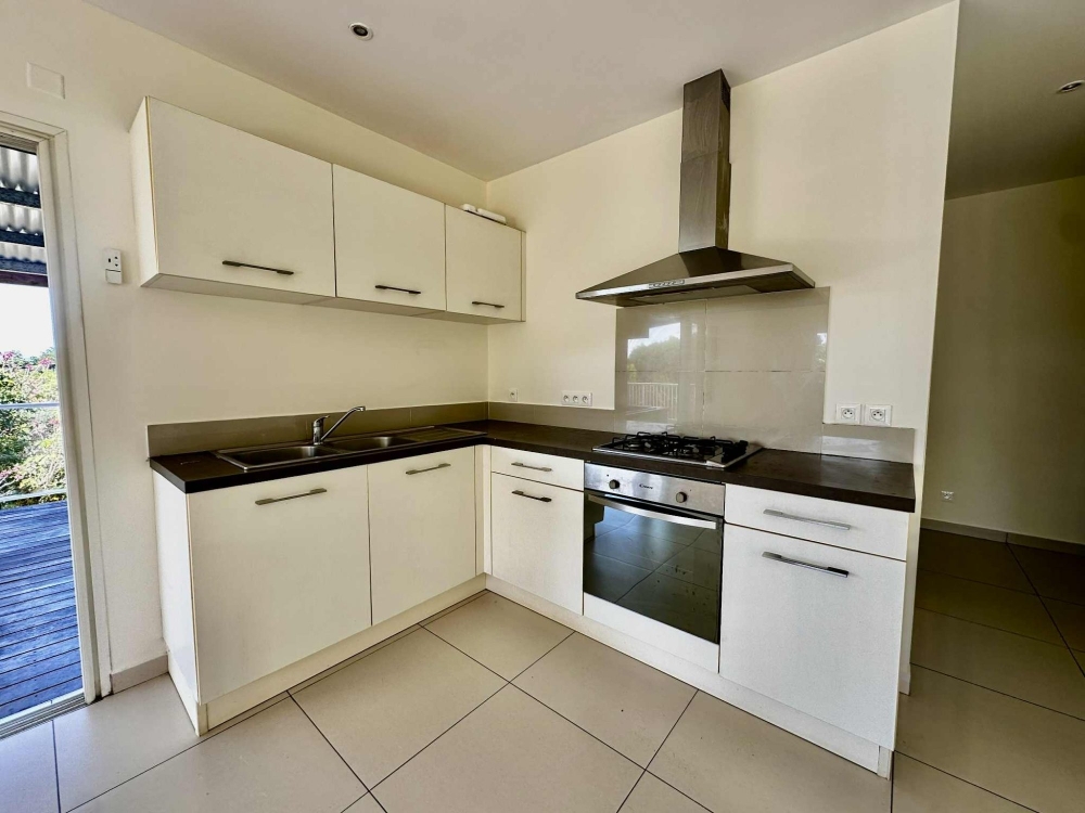La cuisine meublée et équipée (four, plaque de cuisson, hotte) s'ouvre sur un séjour spacieux et lumineux pour une surface totale de 30m², prolongé par une terrasse de 26m² avec une belle vue mer, idéale pour vos repas en plein air ou vos moments de détente.