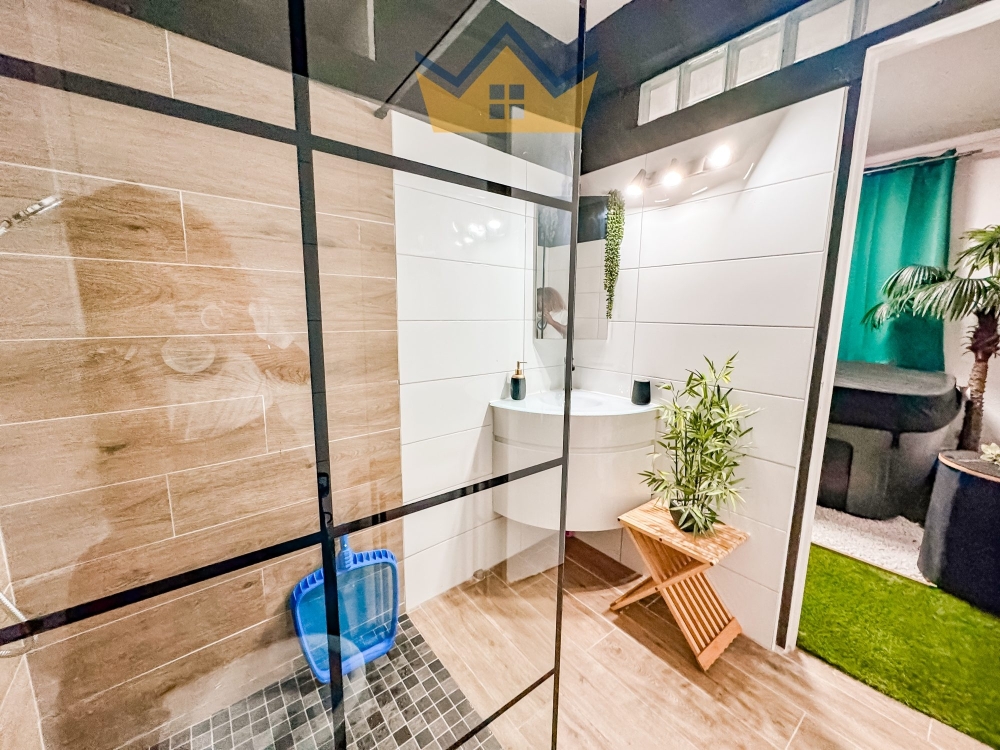 Actuellement aménagé en espace bien-être / love-room, le bien offre un concept original très apprécié en location saisonnière — fort potentiel de rentabilité immédiate.