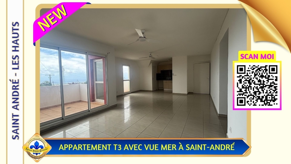Vous cherchez un appartement à louer à Saint-André, lumineux et calme, avec une vue imprenable sur la mer et les montagnes ?