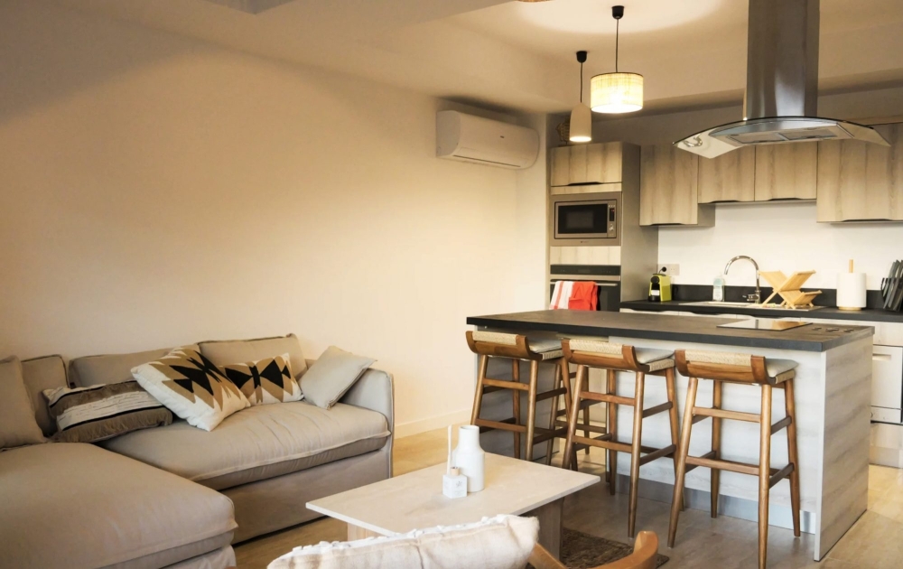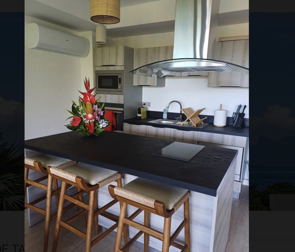 dans un immeuble neuf, appartement de deux chambres avec vue Moorea.