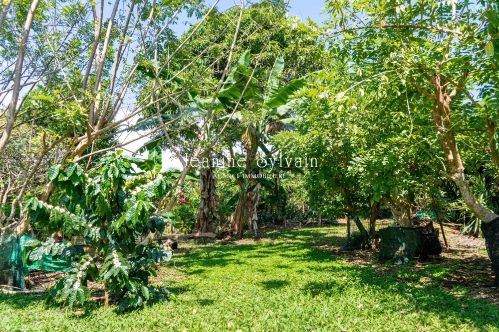 Ce terrain a été planté et entretenu avec soin pendant 15 ans et possède aujourd'hui plus de 30 variétés d'arbres fruitiers (Cafeier, Cacayer, Acerolat, Carossolier, Carambolier, Tamanu, Avocatiers 18, Macadamia, Mangoustan, Vanille, Pitaya...) et près de 30 plantes ornementales et aromatiques.