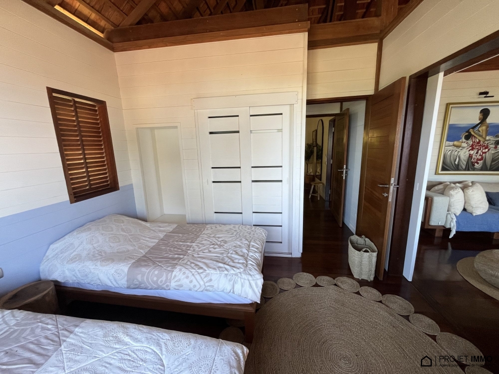 À vendre chalet F4 meublé à la Résidence LEGEND de Moorea, ce chalet en bois de type F4 offre un cadre de vie paisible et verdoyant, à proximité immédiate du lagon et des commodités.