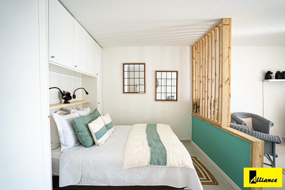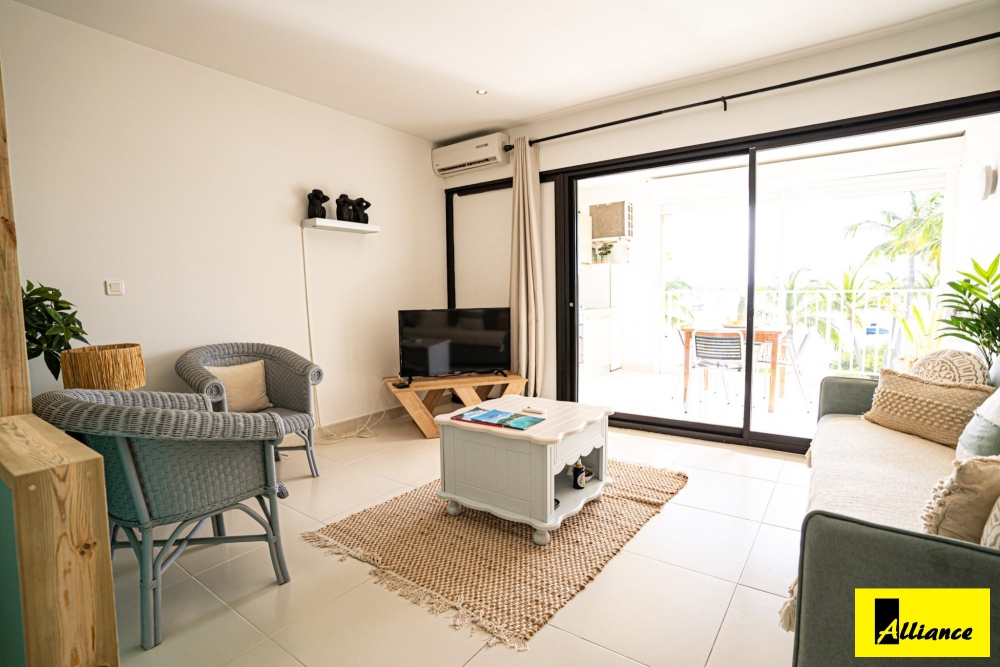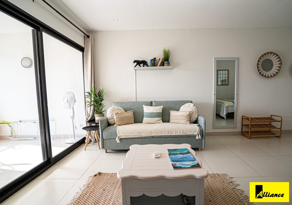 Charmant studio de 34 m² situé au 2? étage d'une résidence sécurisée avec piscine, offrant une vue lagon. Il dispose d'un coin chambre, d'un coin salon-séjour, d'une salle de bain, d'une entrée ainsi que d'une cuisine aménagée et équipée sur la terrasse.