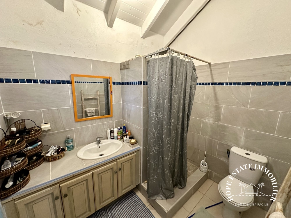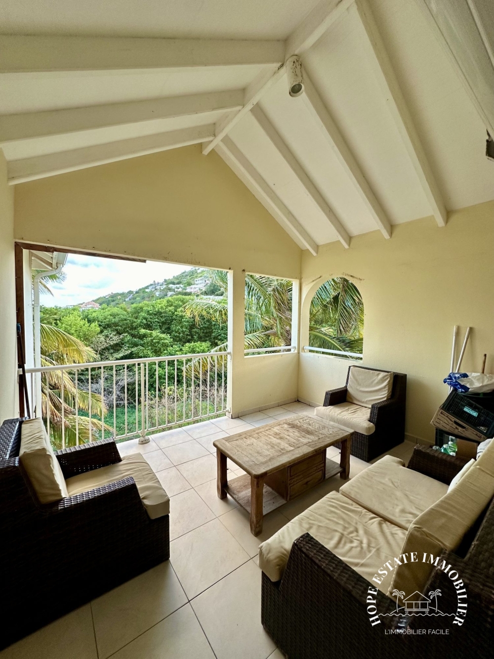 Oyster pond, dans une résidence sécurisée vente d'un appartement avec vue sur lagon, un salon séjour avec cuisine américaine, une grande terrasse couverte, chambre séparée