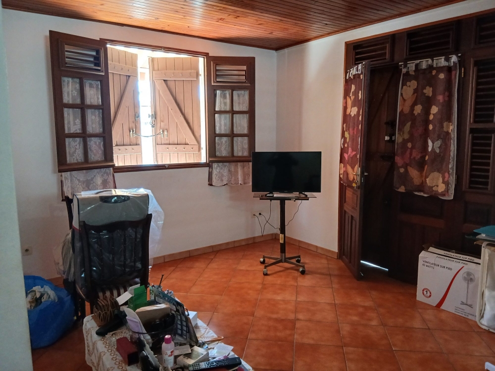 Maison de plain-pied au Lamentin, d'environ 76 m², lumineuse, composée de 2 chambres dont 1 avec placard, d'une salle d'eau, d'un WC indépendant et d'un espace de vie d'environ 44 m², constitué d'un séjour- salon, d'une cuisine style américaine avec accès direct sur la terrasse.