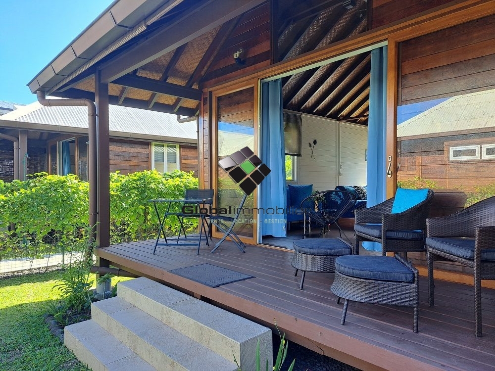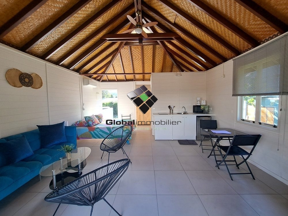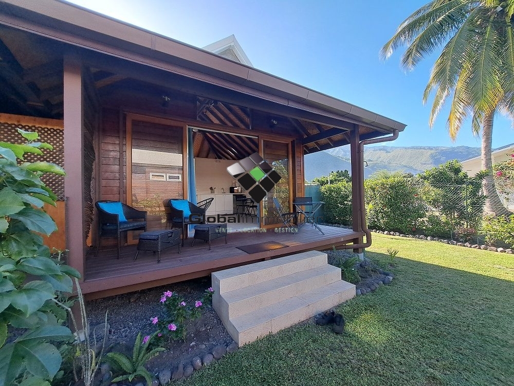 Nous vous proposons à la location, début PAEA, dans un havre de paix, Bungalow, Coté mer, avec accés direct à la plage, équipé, meublé, 1 pièce, terrasse couverte, salle d'eau avec toilette, jardin,.