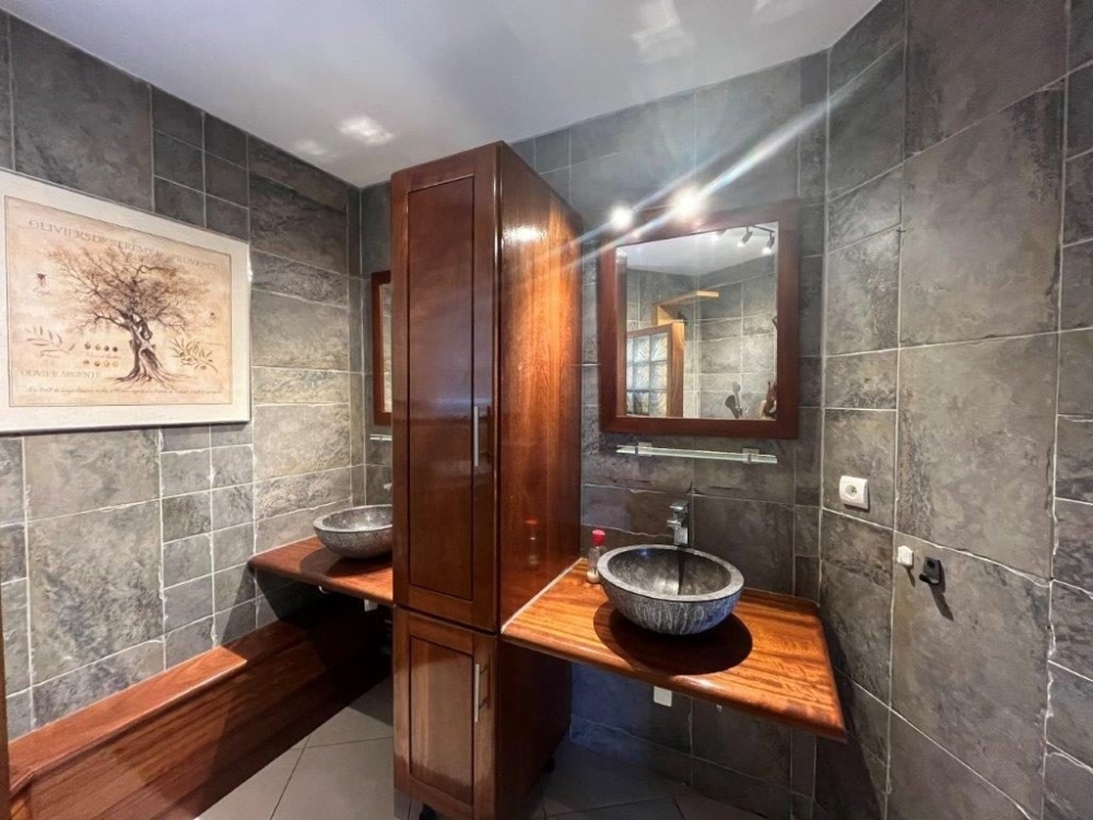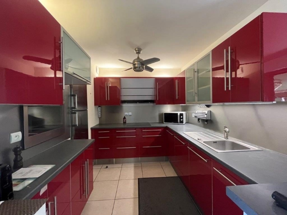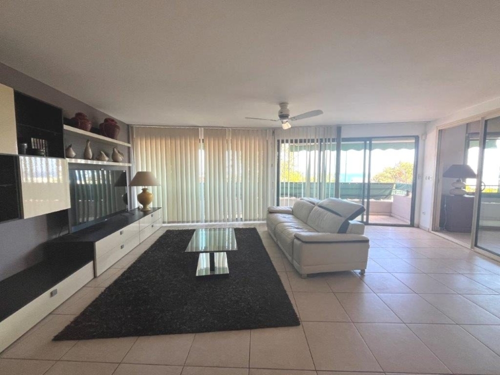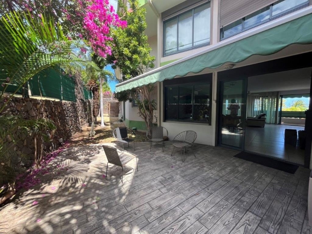 Bel appartement en RDC de type F3/F4 meublé longue durée en résidence principale, d'une superficie habitable de 107 m² comprenant: une entrée, un grand séjour traversant avec brasseur d'air et climatisation, avec en prolongement une chambre d'appoint climatisée fermée par une baie vitrée, une cuisine complètement équipée et aménagée, deux belles chambres climatisées avec placards (18 et 12 m2), une large salle d'eau avec douche à l'italienne et double vasque, un WC indépendant. Un grand balcon donnant sur le séjour et une terrasse donnant sur le coin salle à manger, une terrasse à l'arrière, un total de 40 m2 de terrasse, un jardin privatif de 180 m². Appartement très agréable et spacieux. Un box fermé avec emplacement pour 2 véhicules.