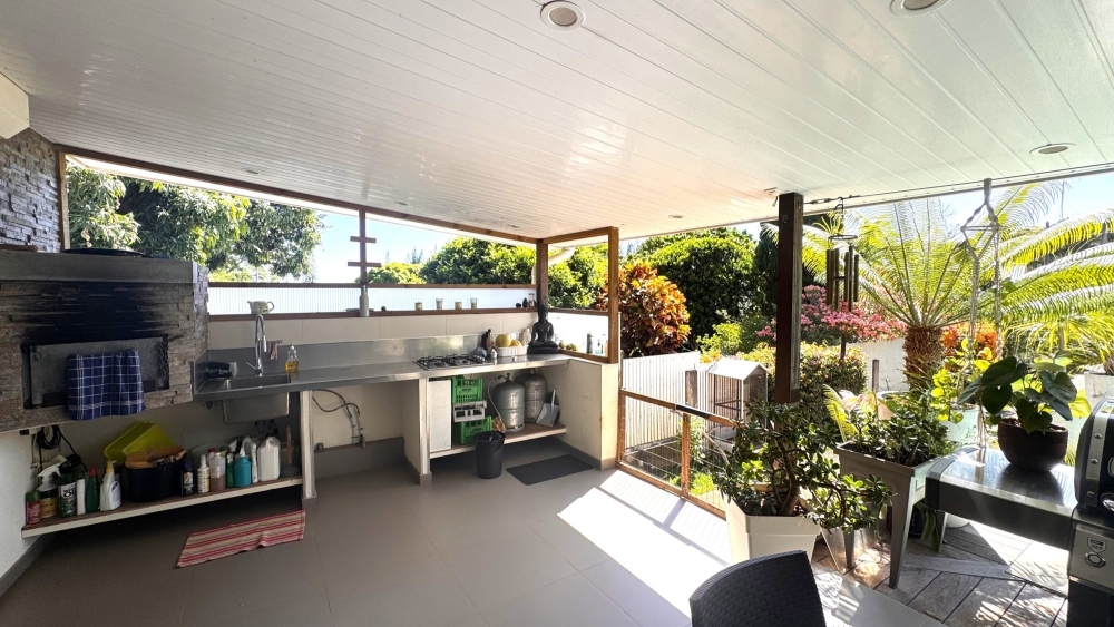 Grande terrasse couverte ( 55m²) avec cuisine d'été; piscine( 4.3x6.5), dock de 80m²
