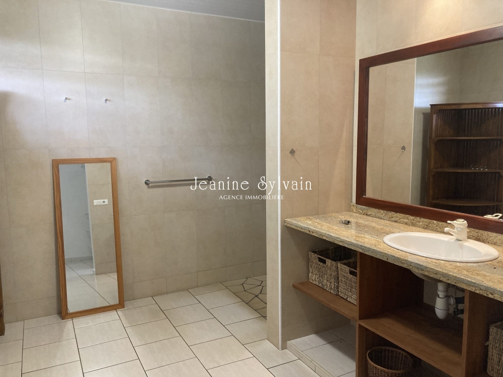 Maison spacieuse et agréable, très belles finitions, comprenant: au rez de chaussé 1 grand salon cuisine, salle à manger, terrasse couverte, 2 chambres dont une avec dressing, 2 salles d'eau, et en rez de jardin 1 chambre avec salle d'eau et réserve. 1 garage couvert, 1 buanderie cellier. Beau jardin plat bien arboré. Vue superbe sur Moorea. L'ensemble est très bien meublé