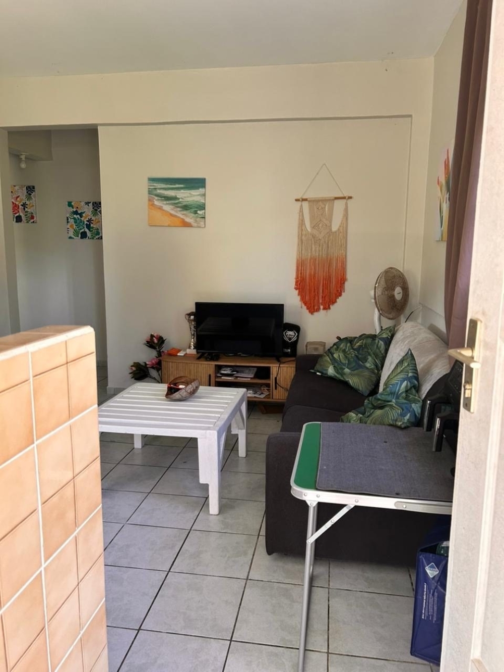 ?? Un salon cosy décoré avec goût, équipé d'un canapé confortable, d'une télévision et d'une table basse – idéal pour vos moments détente.