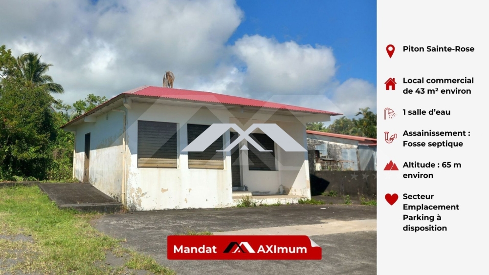 MAXImmo vous propose ce local d'environ 43 m² situé en bordure de la nationale de Sainte Rose, composé de 2 pièces, d'une salle d'eau et d'un wc. Travaux à prévoir. Emplacement idéal pour projet pro, zone touristique. Mandat n° 12 251 Loyer 750 € - Honoraires à la charge du locataire 2 250 € - Dépôt de garantie 750 € Réseau MAXImmo - Plus d'informations et consultation de nos tarifs sur www.maximmo.re Les informations sur les risques auxquels ce bien est exposé sont disponibles sur le site Géorisques : www.georisques.gouv.fr'
