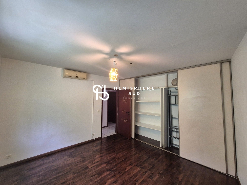 Au premier étage d'une résidence calme et recherchée, idéalement située, disposant d'une piscine collective, cet appartement à rénover est idéal pour une première acquisition ou un investissement pérenne. D'une superficie totale de 90 m² environ, il se compose d'un patio sécurisé, d'une entrée, d'un salon avec cuisine ouverte, de deux chambres avec placards, et d'une salle de bains. Un stationnement privatif est vendu avec le logement.