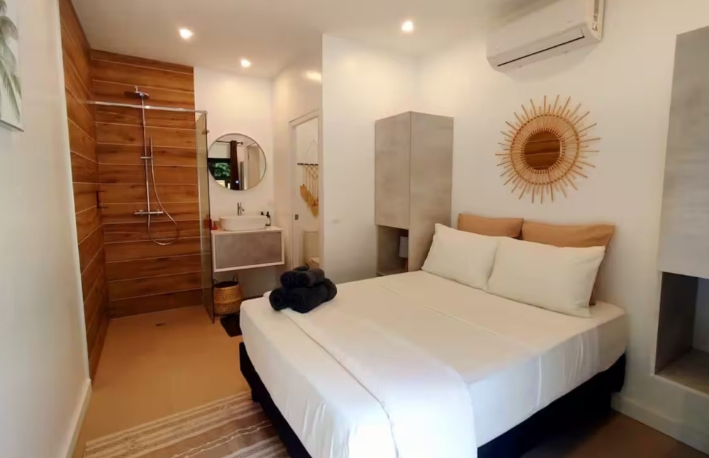 La cuisine américaine, aménagée et équipée, est le coeur battant de cette maison. Elle invite à la convivialité et aux moments partagés en famille ou entre amis. Imaginez-vous préparer des repas délicieux tout en profitant de la vue sur la mer ou en discutant avec vos amis.
