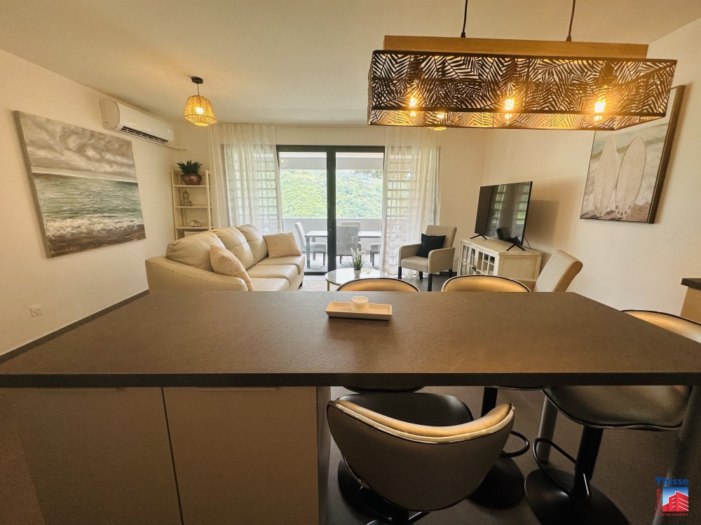 Au sein d'une résidence neuve sur les hauteurs de Papeete, Bel appartement F3 de 65m2 comprenant 2 chambres, un grand salon avec cuisine aménagée et équipée, une salle d'eau, un WC indépendant et un espace buanderie.
