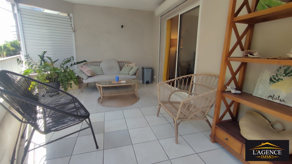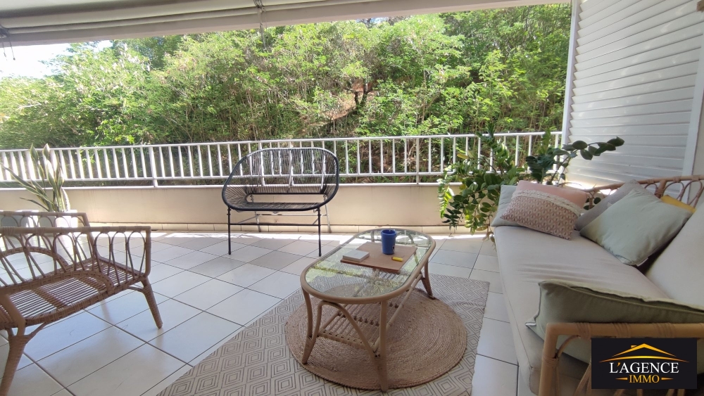 Ce spacieux F2 de 49 m² comprend une entrée, un séjour avec cuisine équipée, une grande chambre avec placards, une salle de bain et sanitaire, prolongée d'une buanderie. Un espace pouvant servir de bureau. Une terrasse couverte de 18 m² offre une vue agréable dans un cadre végétal.