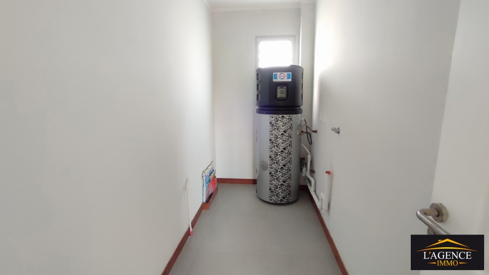 Il est aussi agrémenté de 2 chambres climatisées avec placard, une salle d'eau double vasques, un espace buanderie indépendant avec pompe à chaleur et un sanitaire indépendant.