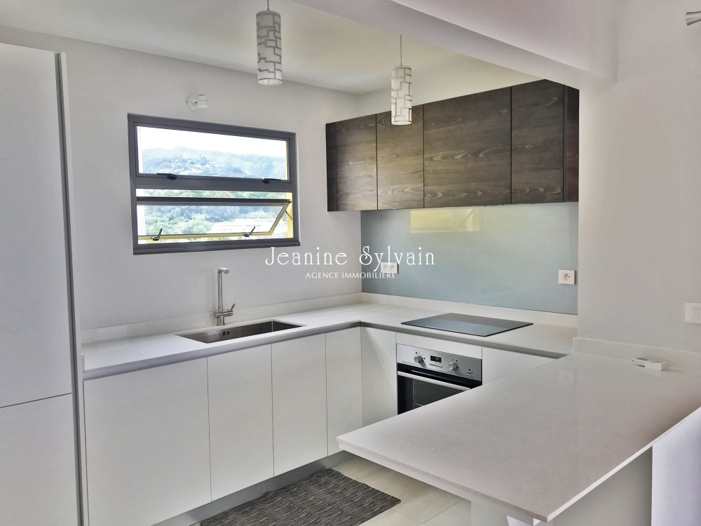 Papeete, dans résidence récente, dernier étage F3 avec belle terrasse vue dégagée sur Moorea et la ville, bien ventilé, belle cuisine aménagée avec lave vaisselle, frigo, grand séjour, 2 chambres climatisées, 2 salles d'eau. 2 places de parking en sous sol. Meublé