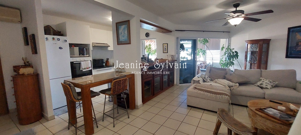 Punaauia, à proximité immédiate de l'Université, dans une jolie résidence de bon standing avec espace jardin commun et bel espace piscine, superbe appartement F3 meublé de 78m2 entièrement rénové et très joliment meublé, belle terrasse couverte face à la mer et Moorea pour apprécier les couchers de soleil.