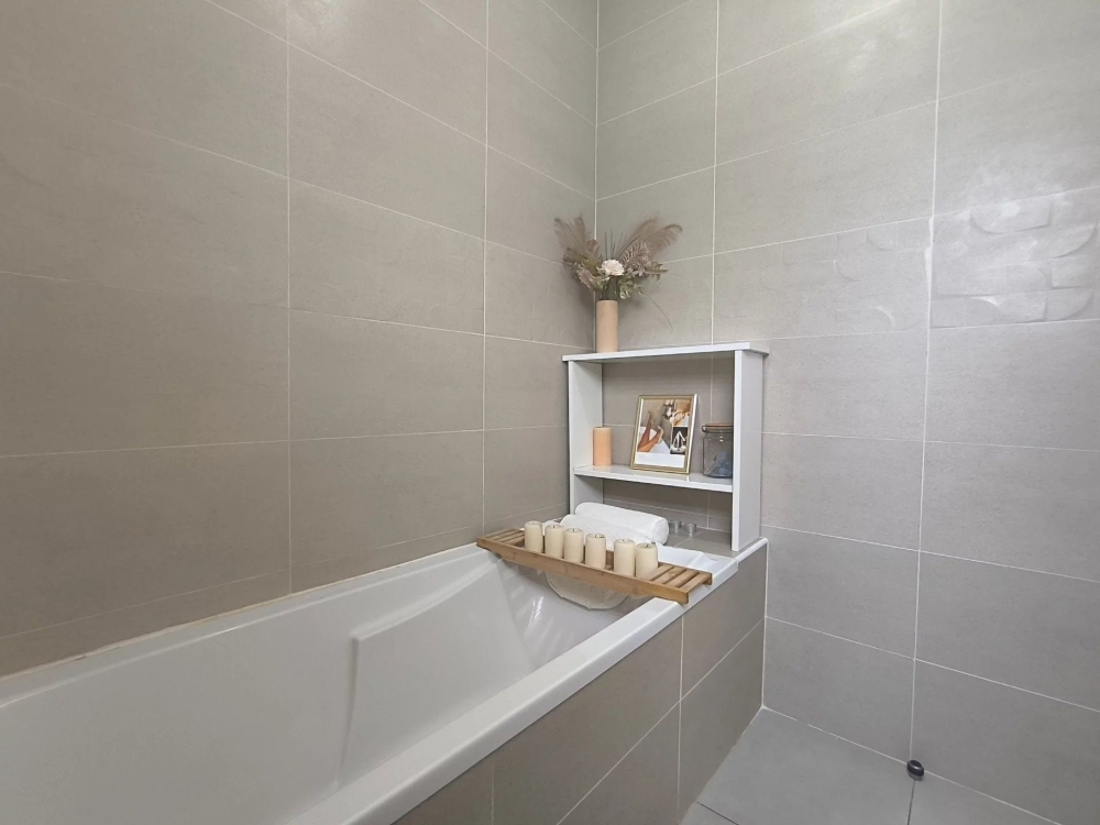 Une salle de bains moderne et des toilettes séparés