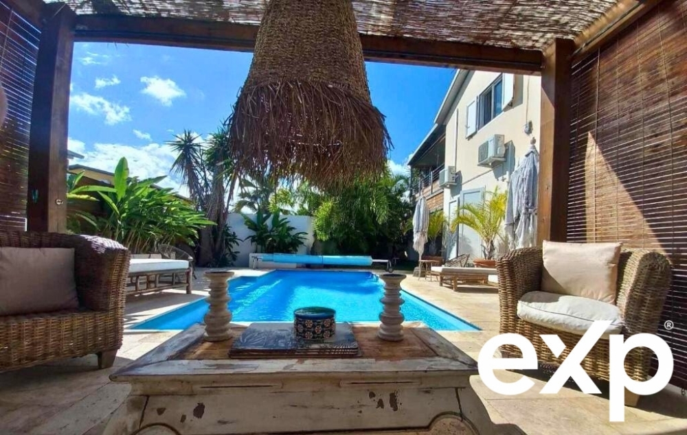 Côté extérieur, la magie opère : piscine privée, jardin tropical paysager, terrasses multiples, cuisine extérieure couverte et coin lounge composent un espace de détente unique, à l'abri des regards, baigné par le soleil et les alizés.