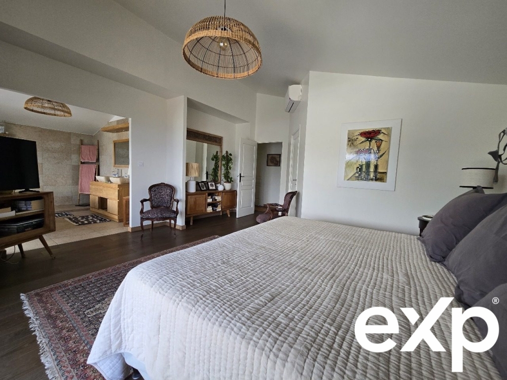 Une magnifique suite parentale avec grand dressing et immense salle d'eau comprenant une douche à l'italienne et une baignoire avec vue mer époustouflante.